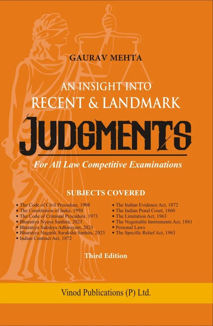 This comprehensive guide is designed for law aspirants and legal professionals looking to master the complexities of the Indian judicial system through its most influential rulings. “An Insight Into Recent & Landmark Judgments” (Third Edition) by Gaurav Mehta is an essential resource for anyone preparing for competitive examinations like the Judiciary, APO, or CLAT PG.